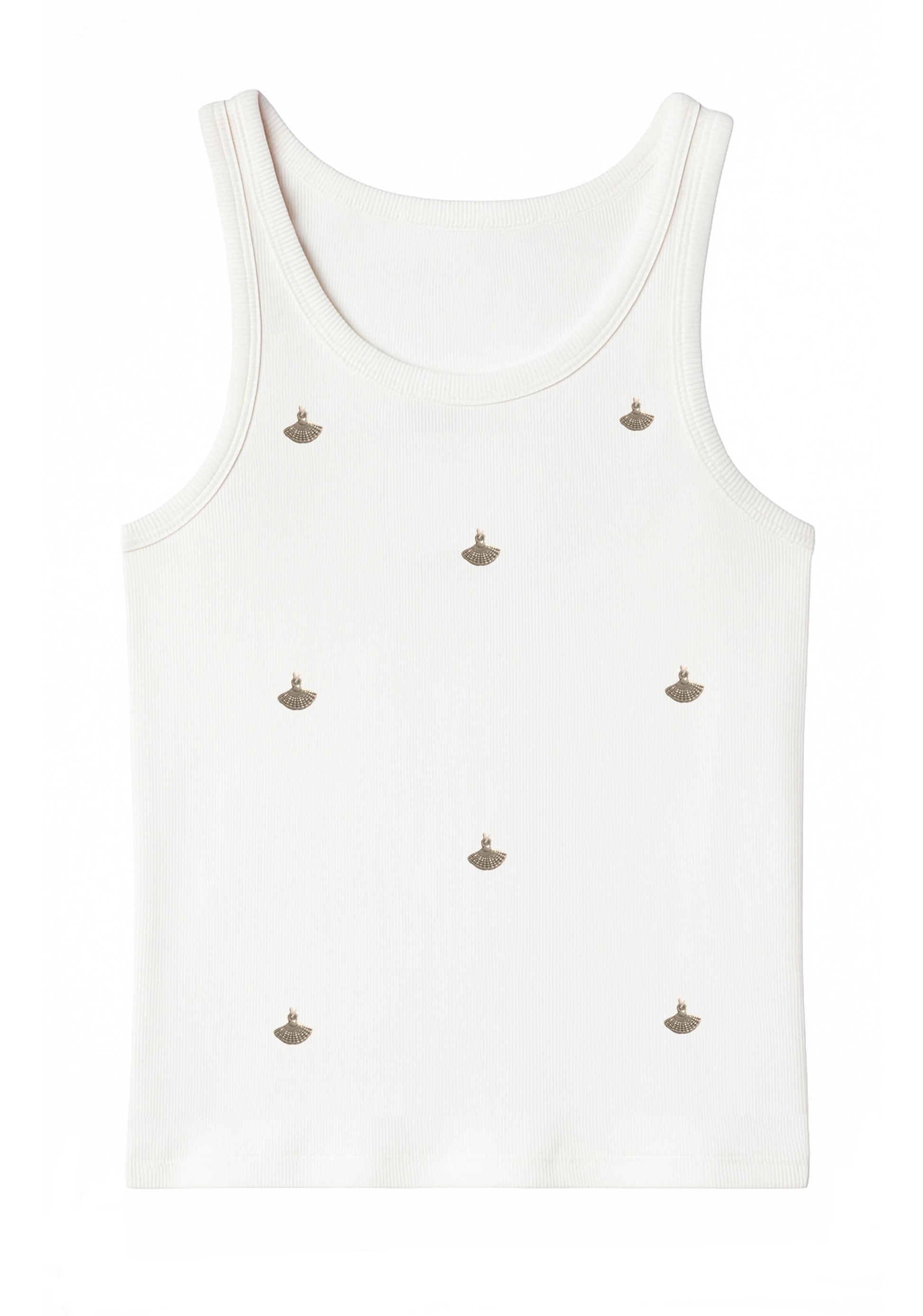 Cotton ribbed tank top featuring silver charms.